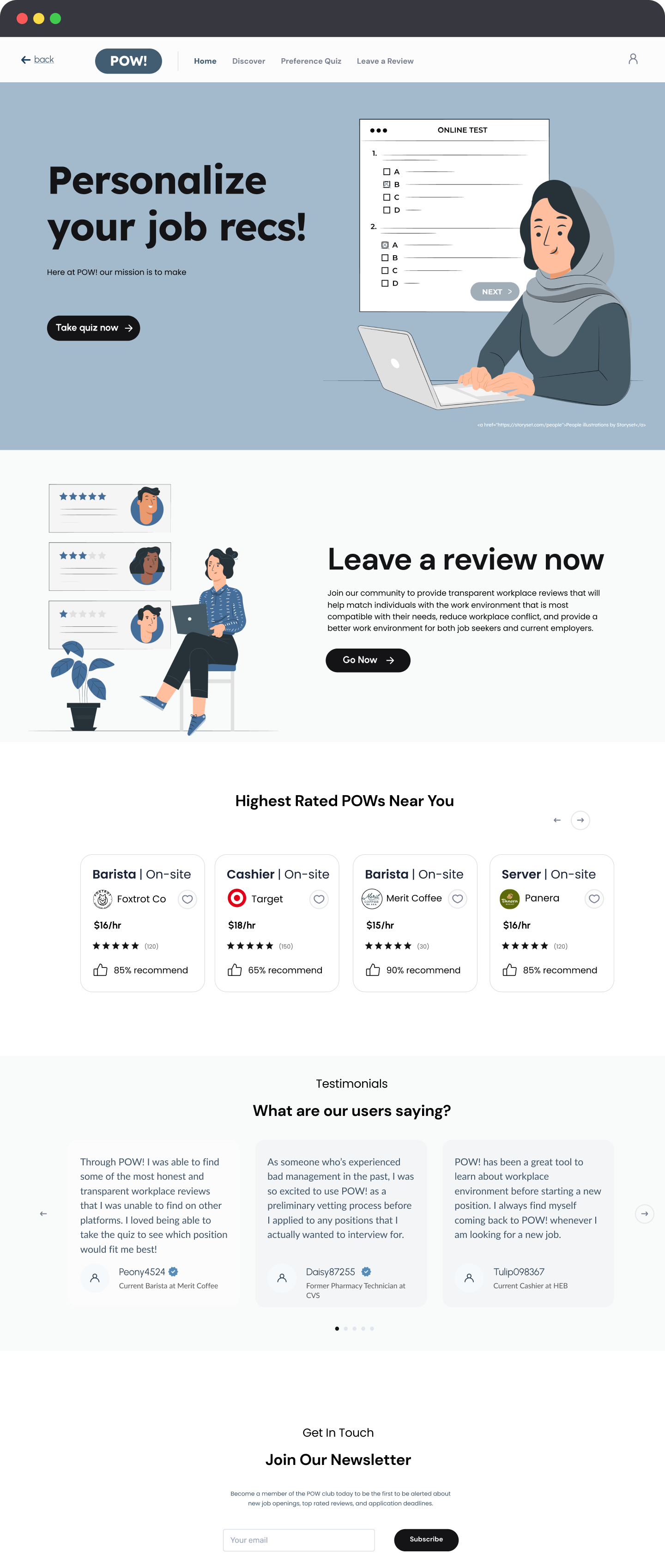 With POW.com, users can anonymously review their service industry jobs. While searching for jobs, users can view verified reviews for potential jobs to get better a feel for their work culture.